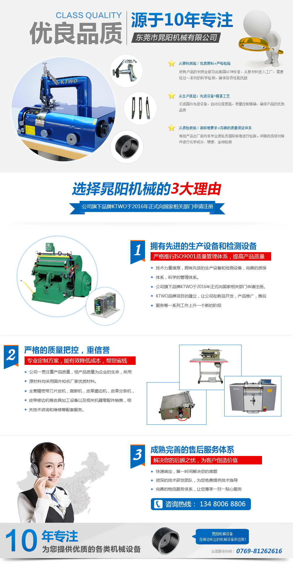 東莞市晁陽機(jī)械有限公司(簡稱晁陽皮具機(jī)械),是一家由2008年收購整合原臺(tái)灣臺(tái)北縣晁陽實(shí)業(yè)有限公司后重組而來的獨(dú)資公司。重組后注冊(cè)地位于廣東省東莞市。經(jīng)營各類皮具機(jī)械,鞋業(yè)機(jī)械。主營精密帶刀片皮機(jī),裁斷機(jī),皮革磨邊機(jī),皮革分條機(jī),皮帶修邊機(jī)等皮具加工設(shè)備以及相關(guān)機(jī)器零配件銷售,相關(guān)技術(shù)咨詢和維修等配套服務(wù)。